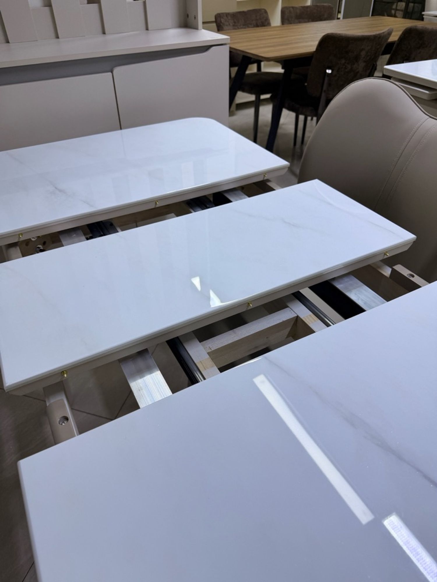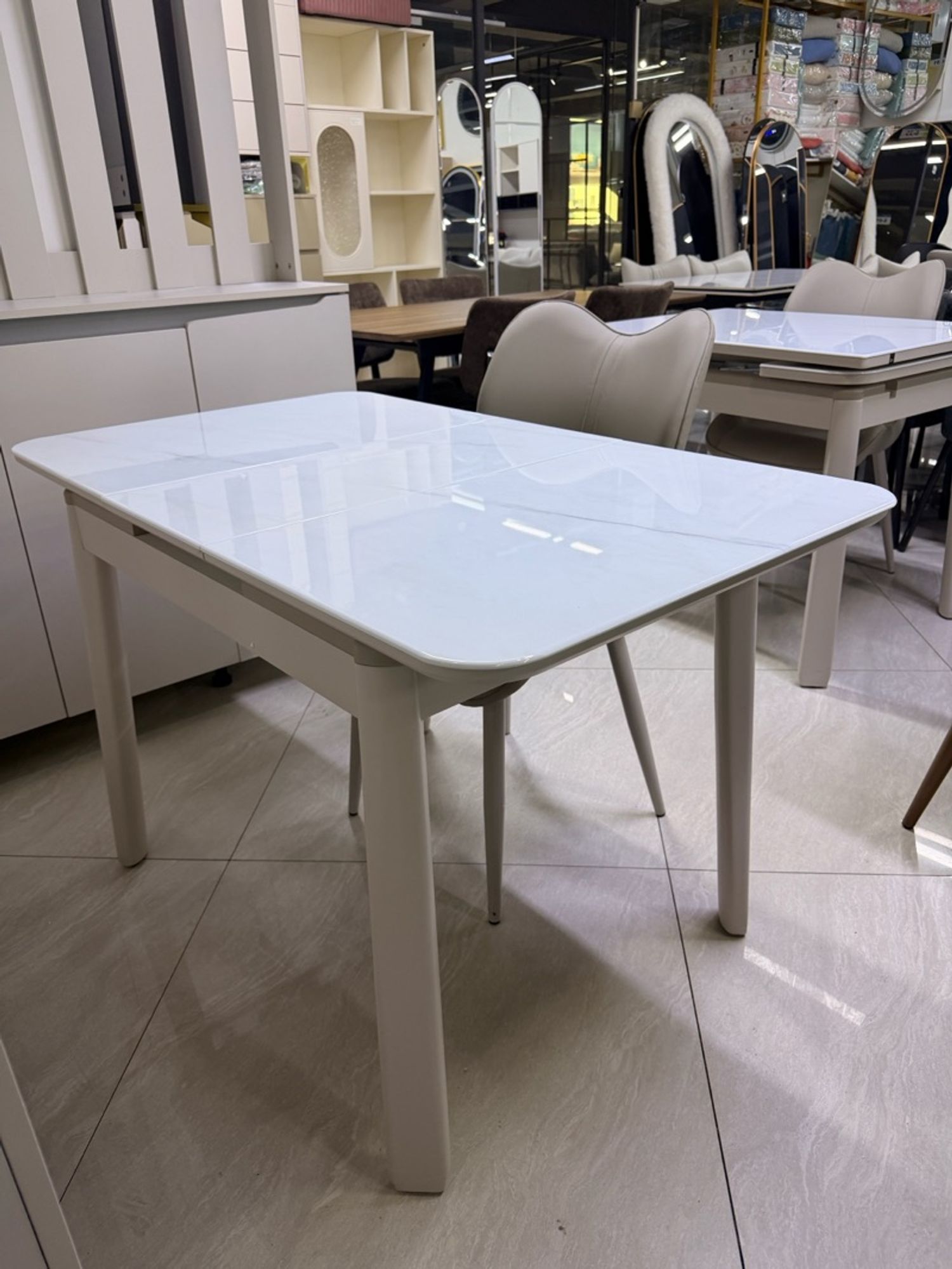 Хэмжээ: 90/120*70 жижиг зай талбайд зориулсан зай их эзлэхгүй модон хөл рамтай чулуун тавцантай ширээ +4н сандал