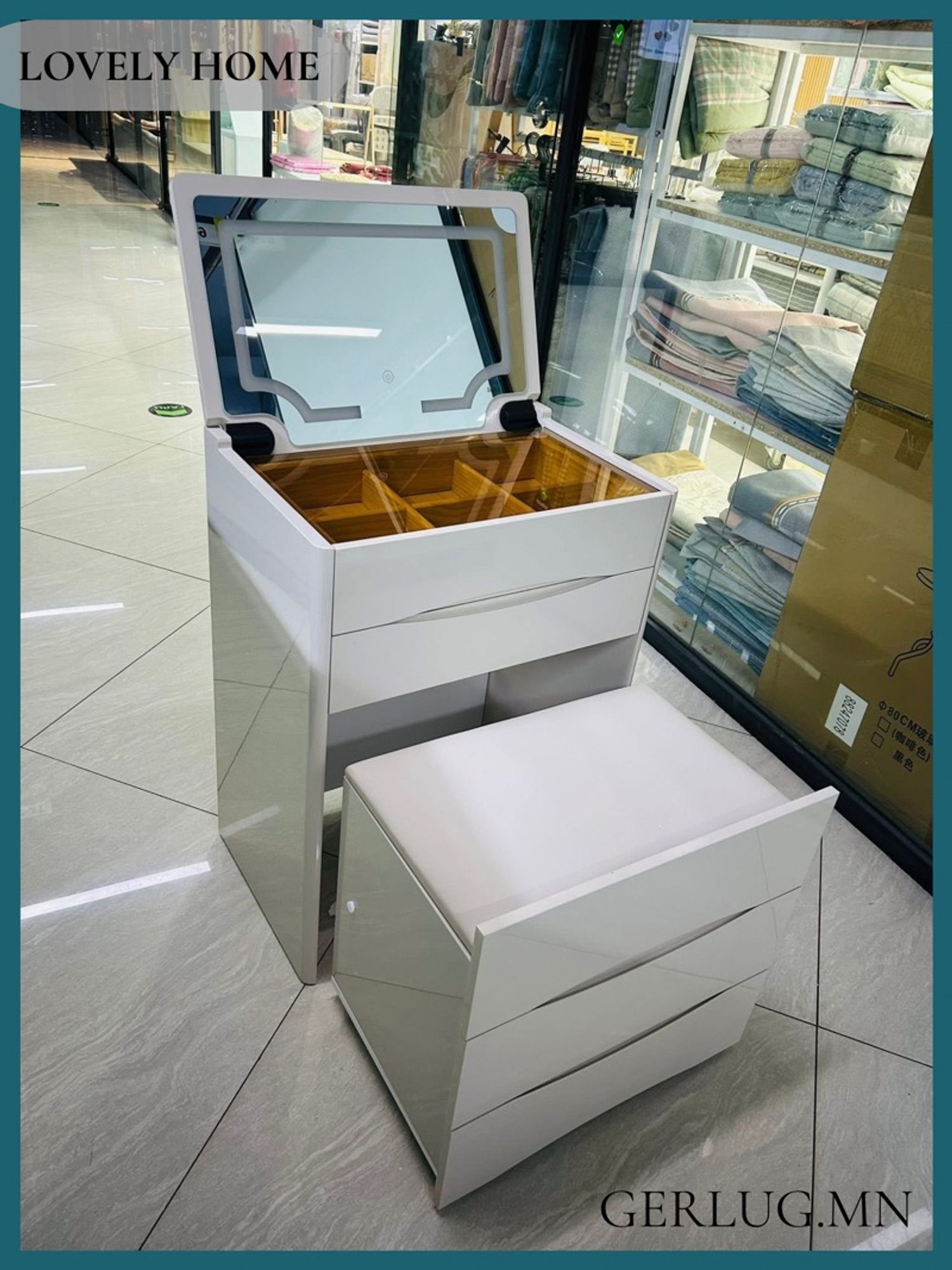 Хэмжээ: 60*80* 40 Сандал нь гараад ирнэ дугуйтай. толь хумигдана. Материал маш сайн
